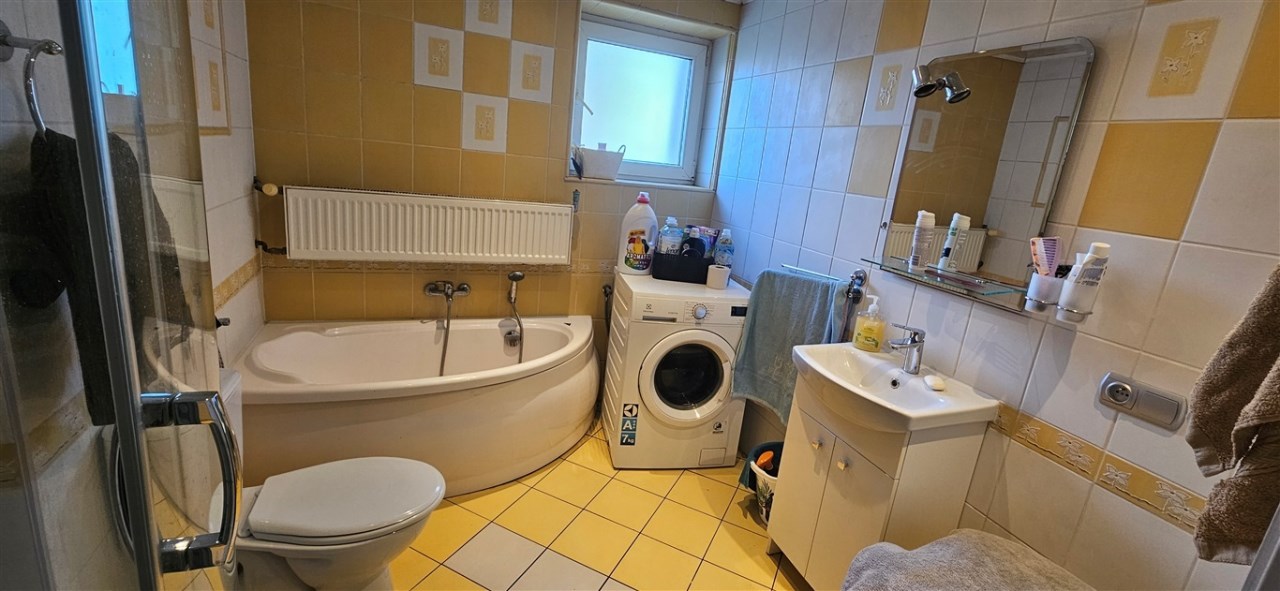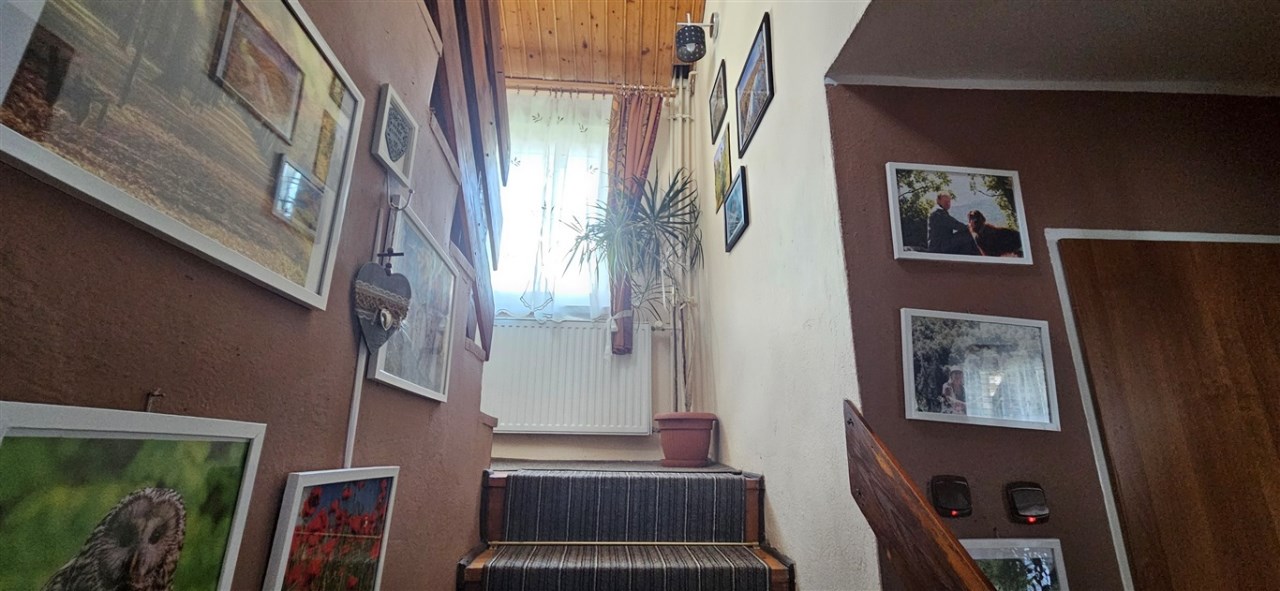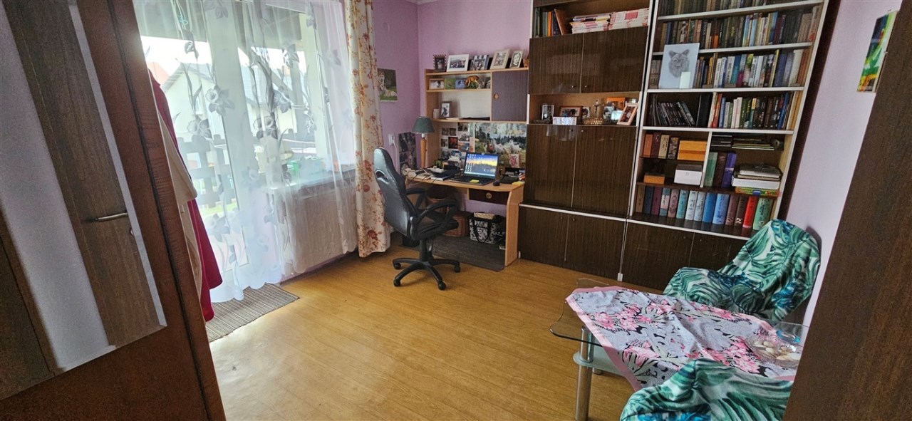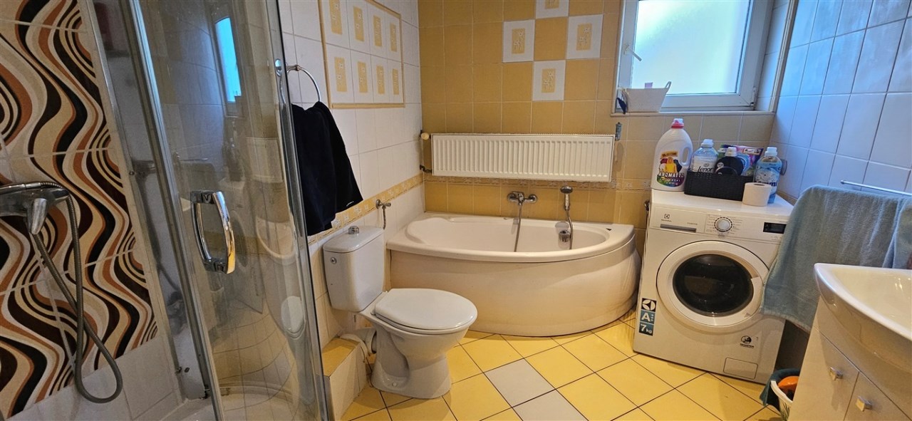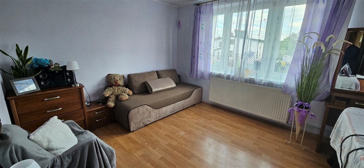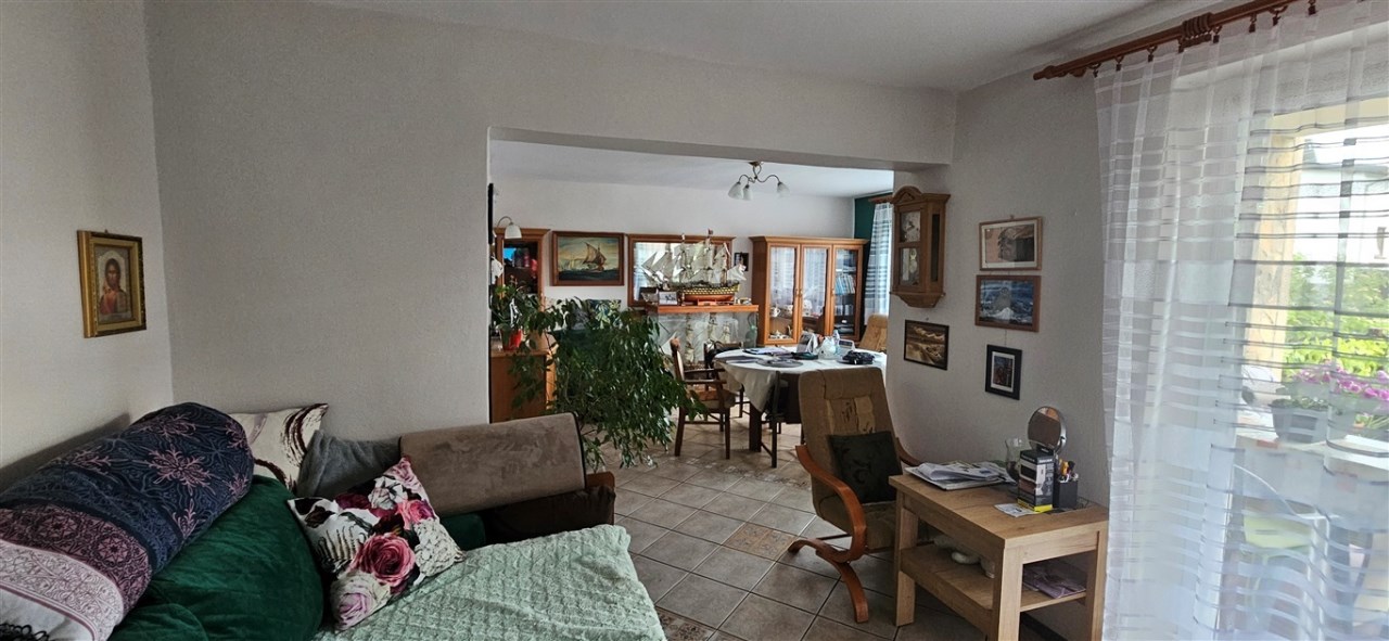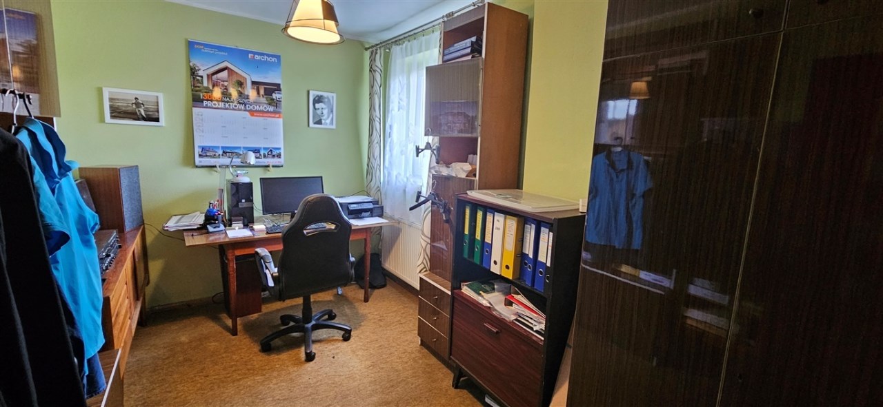 Dom wybudowany w latach osiemdziesiątych, w tradycyjnej technologii, murowany, z dachem płaskim, krytym papą, ocieplonym ekofibrem 15cm, wełną mineralną 5cm, tynki cementowo-wapienne, z zewnątrz ocieplony styropianem 8cm, okna PCV, w pokojach na podłogach panele, wykładziny, w salonie, łazience, wc, kuchni, hollu na parterze kafle, w korytarzu na piętrze kafle, w pokojach panele, wykładziny. Centralne ogrzewanie w miedzi -piec gazowy oraz alternatywny węglowy. Woda podgrzewana solarami. Media: woda, prąd, kanalizacja, gaz